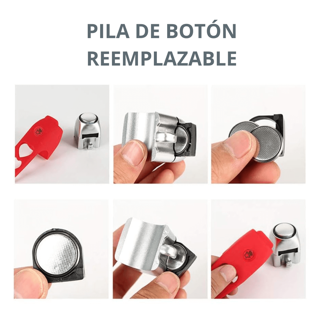 La batería de larga duración te permite utilizar la bocina hasta 2800 campanadas. Un fácil cambio de la pila de botón hará que tu bocina se alargue en el tiempo y sea funcional durante muchos años. Separa la funda de silicona y extrae la pila de la forma más sencilla.