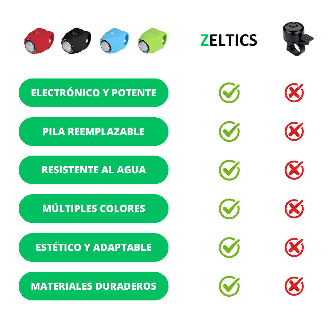 La bocina de Zeltics cuenta con un potente sonido de 120 dB para ser escuchado en cualquier entorno. Descubre los 5 modos de sonido manteniendo pulsado el botón de encendido. Podrás cambiarlo de la forma más sencilla y que la bocina suene a tu gusto.